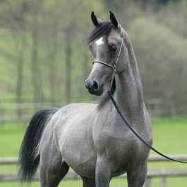 برأسها الصغير - عنقها المقوس - حوافرها الصلبة الصغيرة - شعرها الناعم - صدرها المتسع - قوائمها الدقيقة الجميلة - قوية جدا وتلوح عى وجهها علامات الجد - سريعة